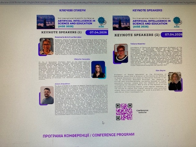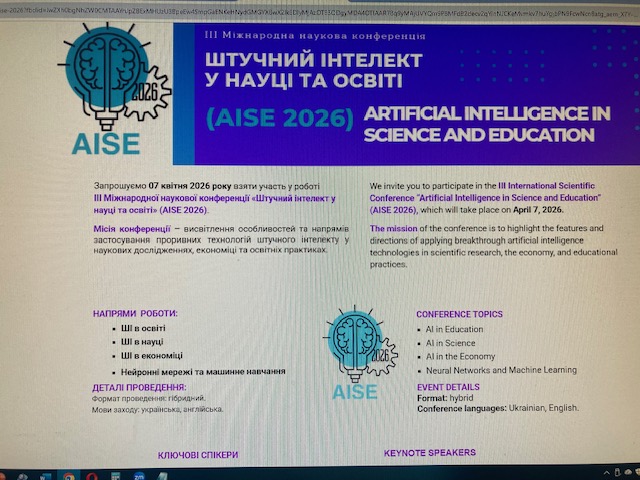 07 квітня 2026 року співробітники НДІ мікрографії прийняли онлайн-участь у ІІІ Міжнародній науковій конференції «Штучний інтелект у науці та освіті» (AISE 2026).